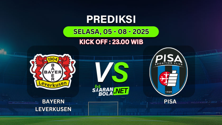 Prediksi PertandinganBAYERN LEVERKUSEN VS PISAKick Off : Selasa, 05 Agustus 2025Pukul 23:00 WIB Prediksi Skor AkhirBAYERN LEVERKUSEN 3-0 PISA