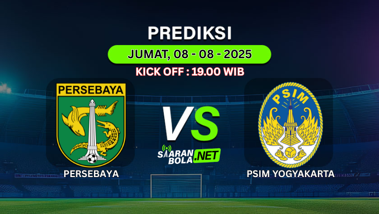 Prediksi PertandinganPERSEBAYA VS PSIM YOGYAKARTAKick Off : Jumat, 08 Agustus 2025Pukul 19:00 WIB Prediksi Skor AkhirPERSEBAYA 2-0 PSIM YOGYAKARTA