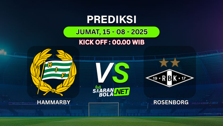 Prediksi PertandinganHAMMARBY VS ROSENBORGKick Off : Jumat, 15 Agustus 2025Pukul 00:00 WIB Prediksi Skor AkhirHAMMARBY 2-1 ROSENBORG