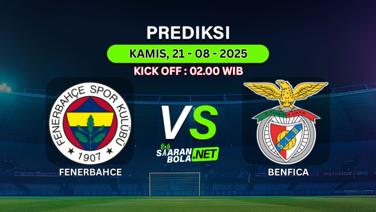 Prediksi PertandinganFENERBACHE VS BENFICAKick Off : Kamis, 21 Agustus 2025Pukul 02:00 WIB Prediksi Skor AkhirFENERBACHE 1-2 BENFICA
