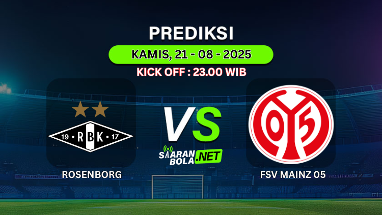 Prediksi PertandinganROSENBORG VS FSV MAINZ 05Kick Off : Kamis, 21 Agustus 2025Pukul 23:00 WIB Prediksi Skor AkhirROSENBORG 1-1 FSV MAINZ 05