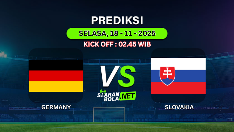 Prediksi PertandinganGERMANY VS SLOVAKIAKick Off : Selasa, 18 November 2025Pukul 02.45 WIB Prediksi Skor AkhirGERMANY 2-0 SLOVAKIA
