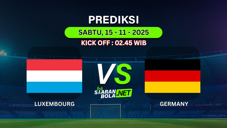 Prediksi PertandinganLUXEMBOURG VS GERMANYKick Off : Sabtu, 15 November 2025Pukul 02.45 WIB Prediksi Skor AkhirLUXEMBOURG 0-3 GERMANY