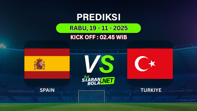 Prediksi PertandinganSPAIN VS TURKIYEKick Off : Rabu, 19 November 2025Pukul 02.45 WIB Prediksi Skor AkhirSPAIN 2-0 TURKIYE