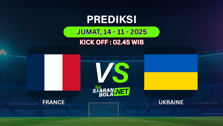 Prediksi PertandinganFRANCE VS UKRAINEKick Off : Jumat, 14 November 2025Pukul 02.45 WIB Prediksi Skor AkhirFRANCE 1-1 UKRAINE