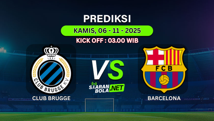 Prediksi PertandinganCLUB BRUGGE VS BARCELONAKick Off : Kamis, 06 November 2025Pukul 03.00 WIB Prediksi Skor AkhirCLUB BRUGGE 1-3 BARCELONA