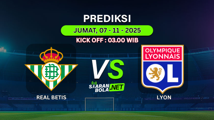 Prediksi PertandinganREAL BETIS VS LYONKick Off : Jumat, 07 November 2025Pukul 03.00 WIB Prediksi Skor AkhirREAL BETIS 1-0 LYON