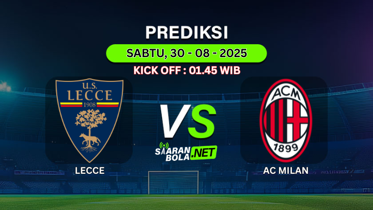 Prediksi PertandinganLECCE VS AC MILANKick Off : Sabtu, 30 Agustus 2025Pukul 01:45 WIB Prediksi Skor AkhirLECCE 0-1 AC MILAN