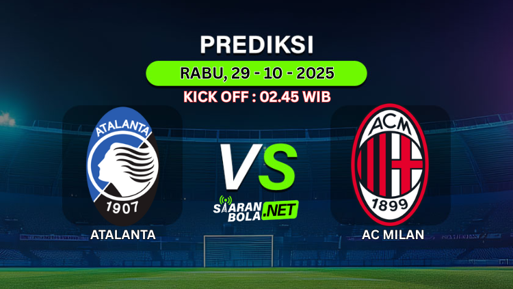Prediksi PertandinganATALANTA VS AC MILANKick Off : Rabu, 29 Oktober 2025Pukul 02.45 WIB Prediksi Skor AkhirATALANTA 1-1 AC MILAN
