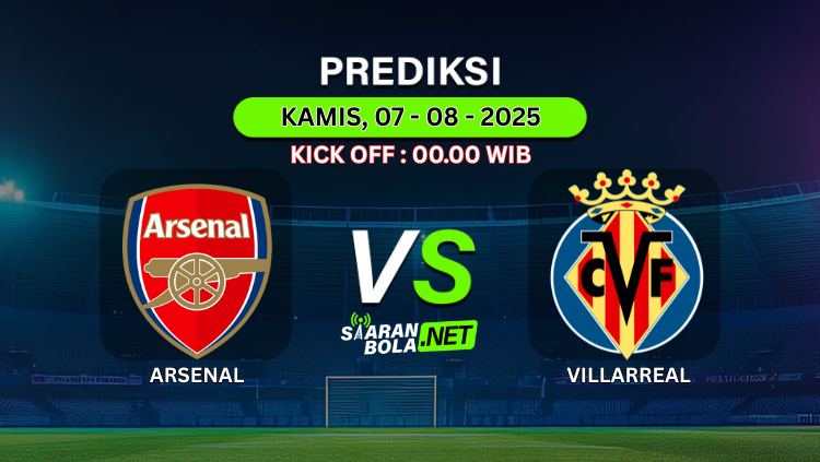 Prediksi PertandinganARSENAL VS VILLARREALKick Off : Kamis, 07 Agustus 2025Pukul 00:00 WIB Prediksi Skor AkhirARSENAL 2-1 VILLARREAL