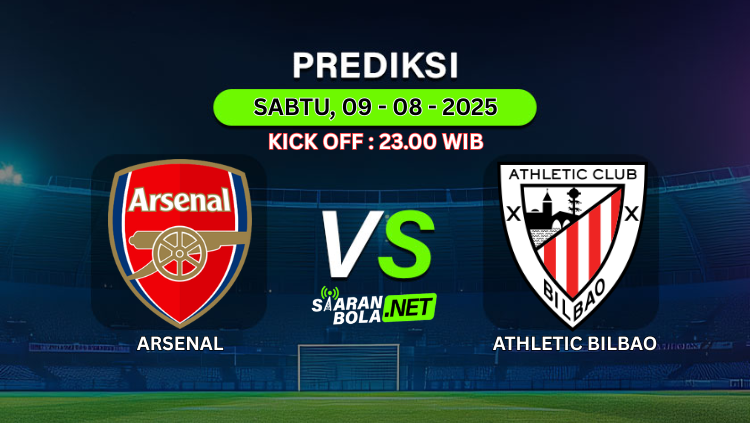 Prediksi PertandinganARSENAL VS ATHLETIC BILBAOKick Off : Sabtu, 09 Agustus 2025Pukul 23:00 WIB Prediksi Skor AkhirARSENAL 2-1 ATHLETIC BILBAO