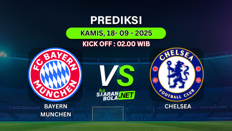Prediksi PertandinganBAYERN MUNCHEN VS CHELSEAKick Off : Kamis, 18 September 2025Pukul 02.00 WIB Prediksi Skor AkhirBAYERN MUNCHEN 2-1 CHELSEA