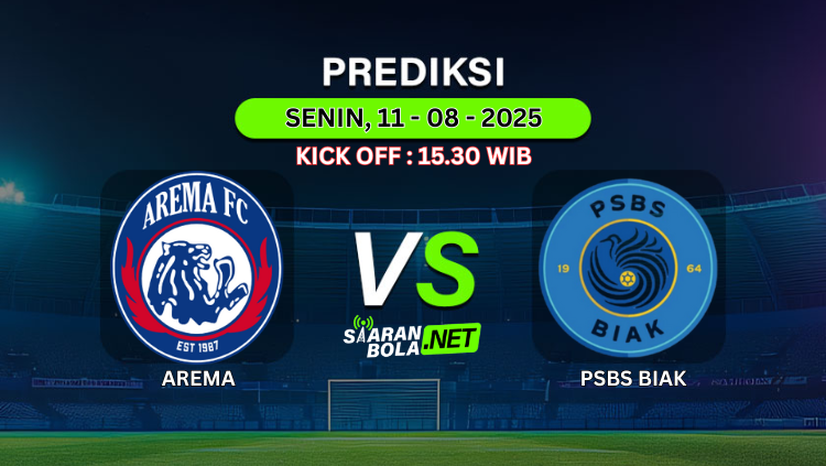 Prediksi PertandinganAREMA VS PSBS BIAKKick Off : Senin, 11 Agustus 2025Pukul 15:30 WIB Prediksi Skor AkhirAREMA 1-1 PSBS BIAK
