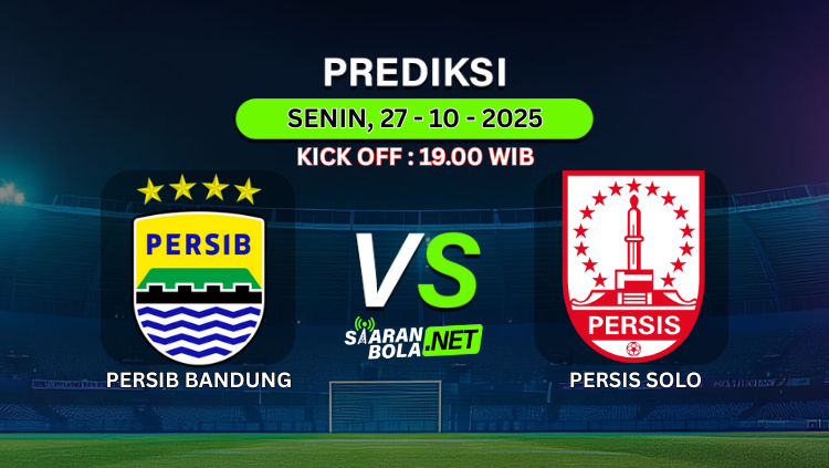 Prediksi PertandinganPERSIB BANDUNG VS PERSIS SOLOKick Off : Senin, 27 Oktober 2025Pukul 19.00 WIB Prediksi Skor AkhirPERSIB BANDUNG 3-1 PERSIS SOLO