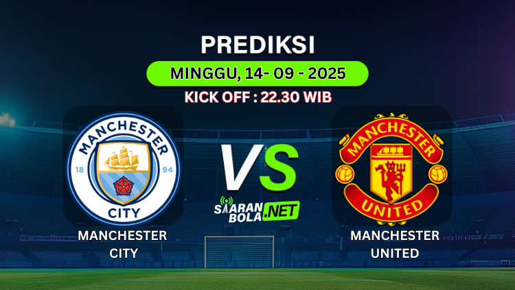 Prediksi PertandinganMANCHESTER CITY VS MANCHESTER UNITEDKick Off : Minggu, 14 September 2025Pukul 22:30 WIB Prediksi Skor AkhirMANCHESTER CITY 2-1 MANCHESTER UNITED