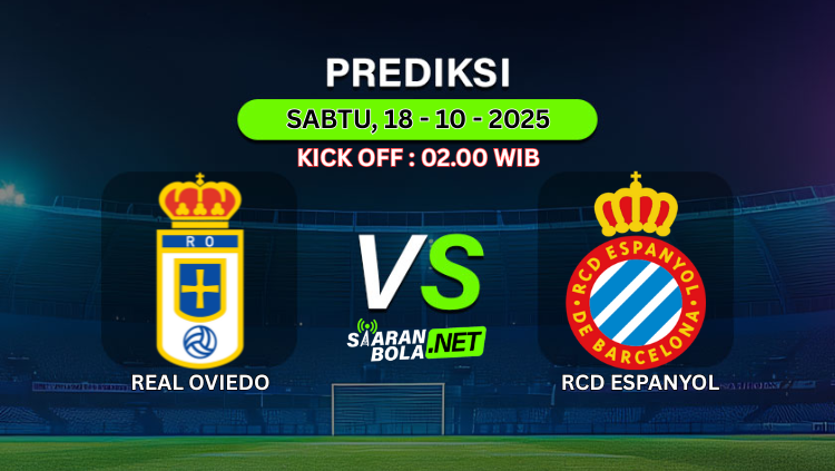Prediksi PertandinganREAL OVIEDO VS RCD ESPANYOLKick Off : Sabtu, 18 Oktober 2025Pukul 02.00 WIB Prediksi Skor AkhirREAL OVIEDO 0-2 RCD ESPANYOL