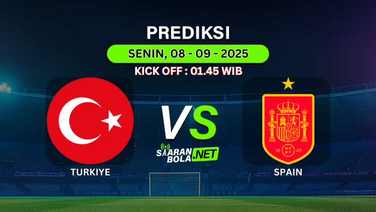 Prediksi PertandinganTURKIYE VS SPAINKick Off : Senin, 08 September 2025Pukul 01:45 WIB Prediksi Skor AkhirTURKIYE 1-2 SPAIN